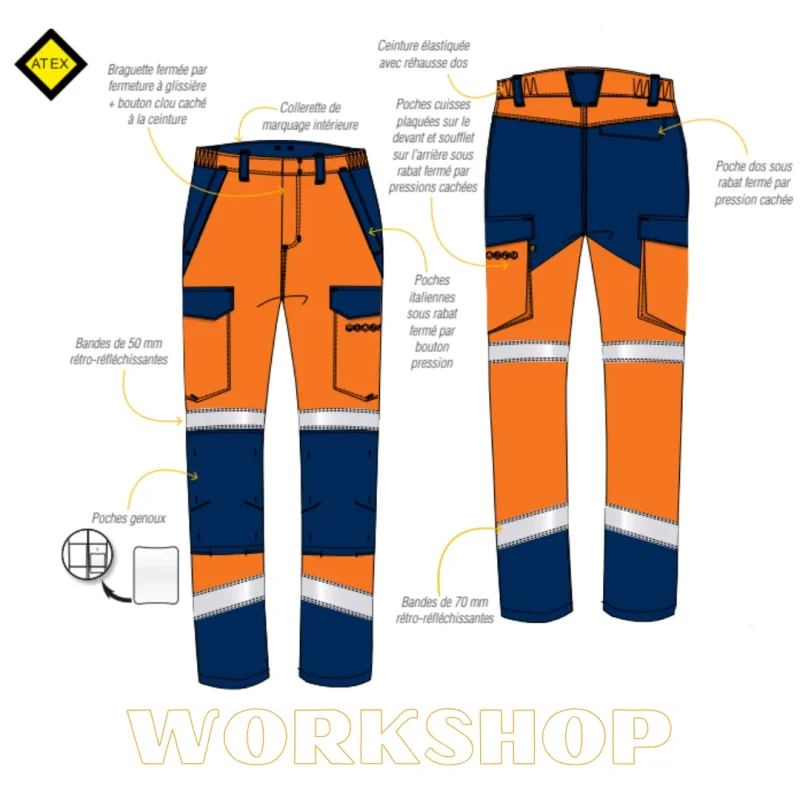 Poches italiennes sous rabat fermé par bouton pression | Bandes de 50mm rétro-réfléchissantes