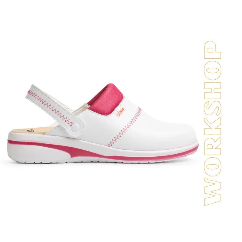 Sabot avec bride rabattable entre l’empeigne et le talon